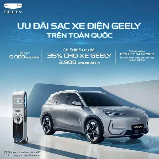 Ưu đãi đặc biệt: 35% cho xe Geely, chỉ còn 3.900 VNĐ/kWh